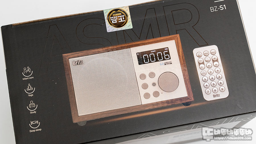 패키지에 제품의 이미지와 모델명 BZ-S1 포터블 라디오 그리고 블루투스 스피커 그리고 올인원 제품답게 FM라디오, MicroSD, USB MP3 플레이, 시계 & 알람, ASMR 사운드 등의 강조가 눈에 띕니다.