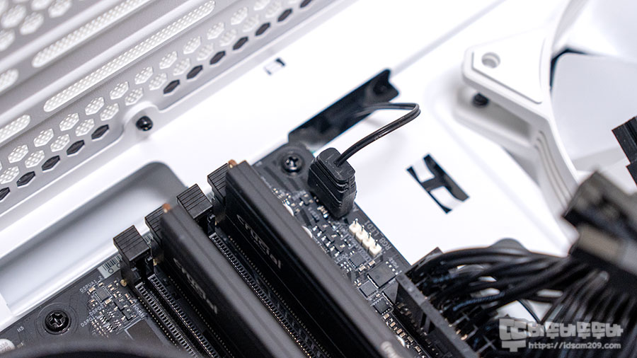 케이스의 FAN 연결 케이블이 길어서 메인보드 아래쪽에 연결을 할 수 있었네요.