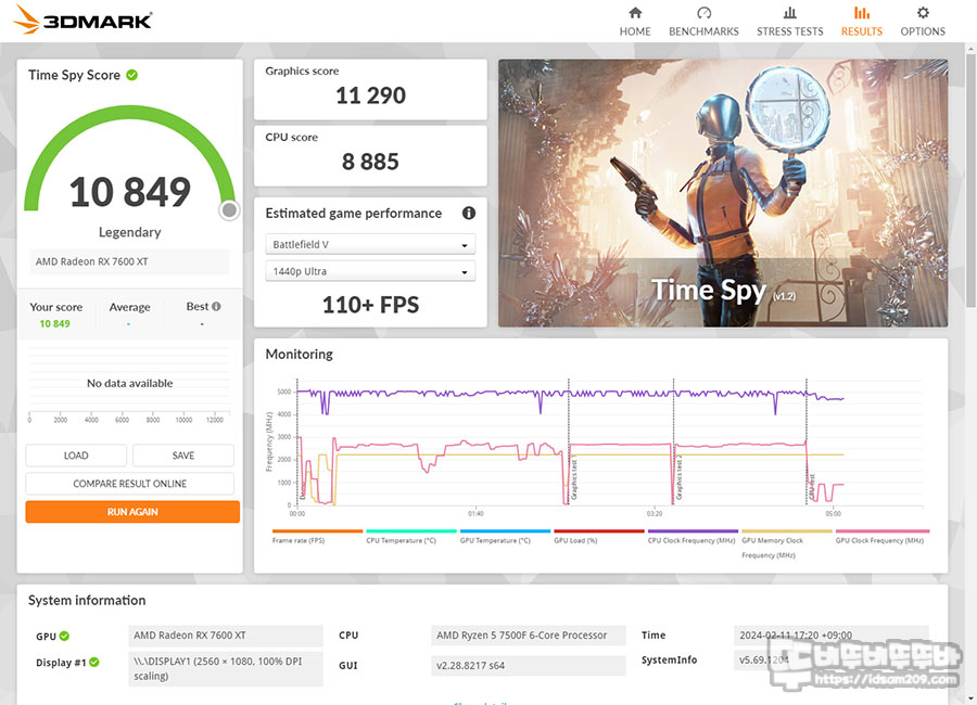3DMARK 파이어 스트라이크에서는 피직스 점수, 타임 스파이에서는 CPU 정보를 참고하시기 바랍니다.