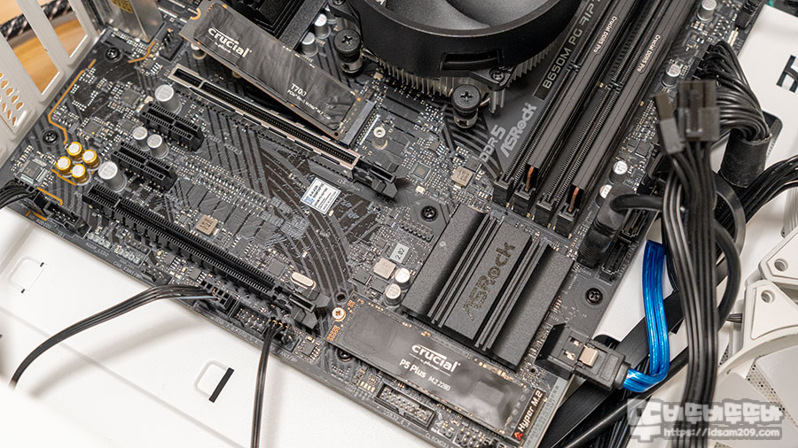 T700의 장착되는 PCIe Gen5 x4 슬롯은 히트싱크를 기본으로 제공하기에 제공되는 히트싱크를 사용하였고 P5 Plus가 장착되는 PCIe Gen4 x4 슬롯은 히트싱크가 제공되지 않기에 별도로 가지고 있는 히트싱크를 장착하여 테스트를 진행했습니다.