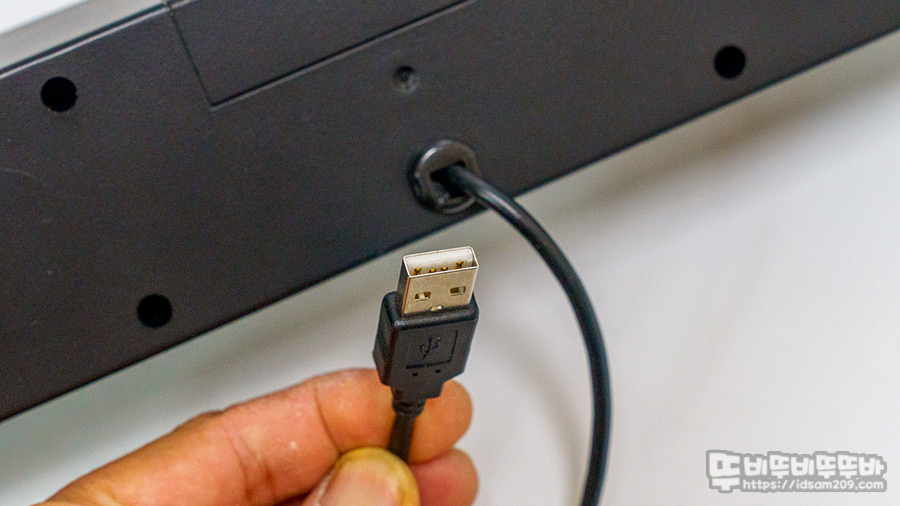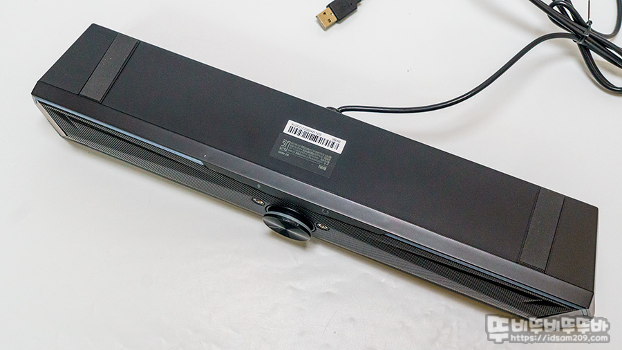 별도의 컨트롤 버튼이 없는 디자인이기에 외형은 심플하며 바닥면에는 두툼한 미끄럼 방지 패드가 있어 안정적인 거치와 스피커 출력에 따른 진동을 방지해 주며 USB 사운드카드가 내장된 모델이기에 USB 단자만 제공됩니다.