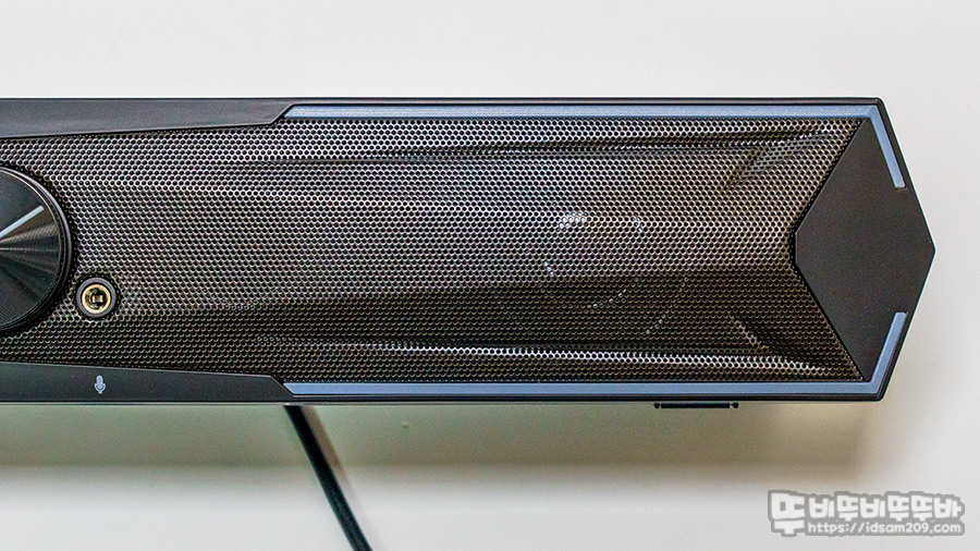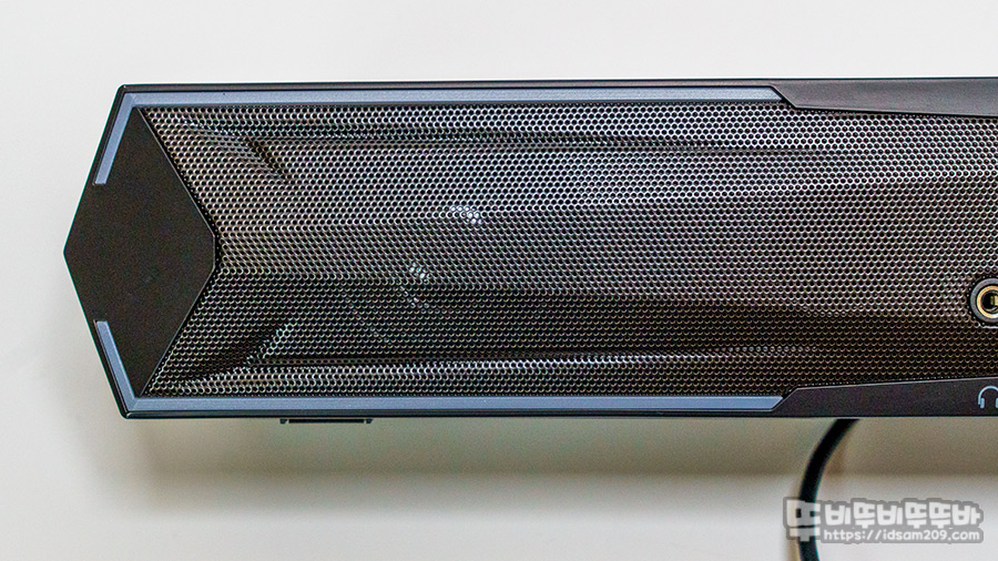 사운드 바 양쪽 끝부분에는 각각 5W 출력을 지원하는 57mm 드라이버 유닛의 모습을 확인할 수 있네요