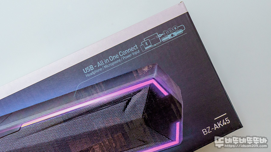 USB 전원과 아날로그 입력을 이용하는 보통의 사운드 바보다는 출력이 좋고 USB 연결로 간편하게 사용할 수 있는 BZ-AK45는 전면에 RGB LED 라이팅을 지원하여 데스크 테리어로 손색이 없는 제품인데요.