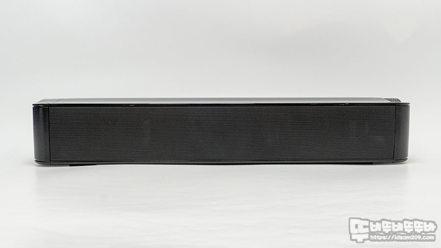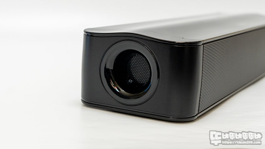 사운드 바 중앙 부분은 살짝 돌출되는 느낌으로 측면의 에어덕트와 연관된 내부 구조로 디자인된 모습입니다.