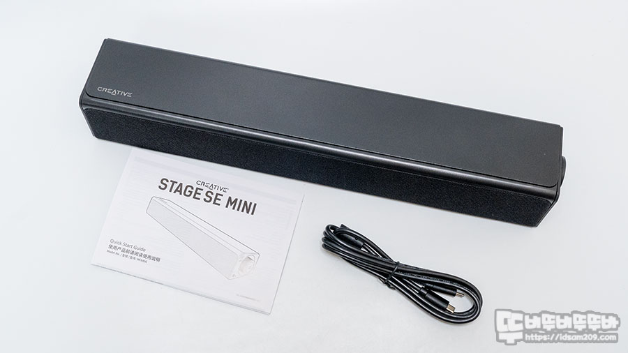 Creative STAGE SE는 410 X 108 X 68mm 크기로 mini 제품보다 앞뒤로 두껍고 살짝 높은 게 특징이며 USB 전원이 아닌 DC 15V 2A 전원을 사용하며 12W 출력의 스피커 2개 구성으로 RMS 24W 최대 피크 출력 48W를 지원하는데요.