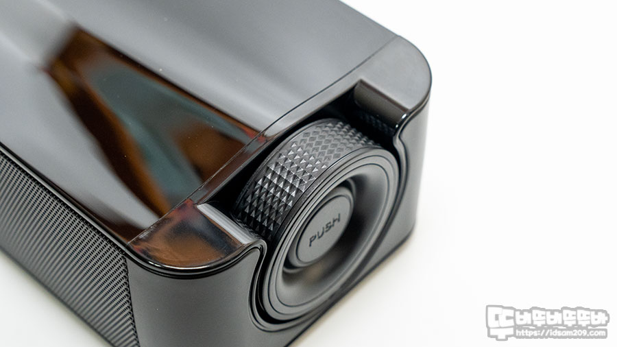 반대편 측면은 볼륨 다이얼과 입력 모드를 변경하는 푸시버튼으로 구성되어 간편한 조작이 가능하며 볼륨 다이얼에는 돌기가 있어 볼륨 다이얼 조작이 한결 편안합니다.