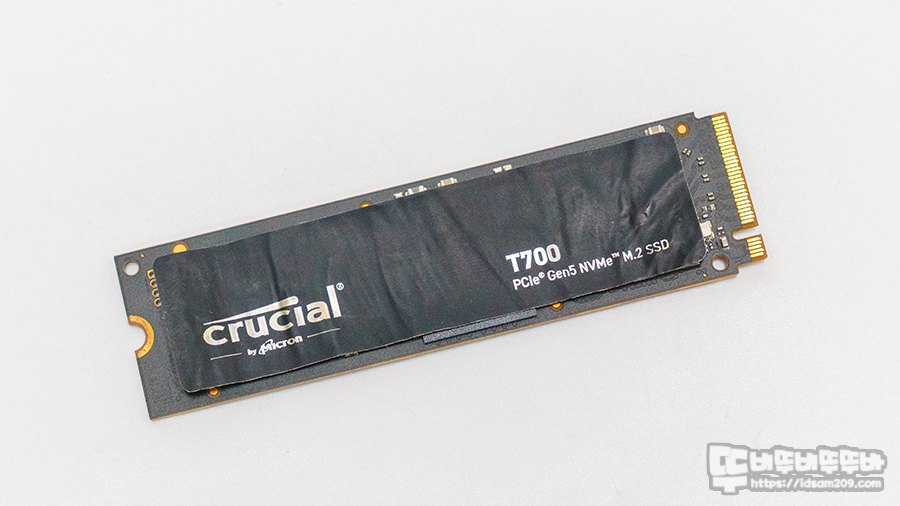 테스트에 사용된 PCIe 5.0 M.2 SSD는 마이크론 크루셜 T700 모델로 순차읽기: 12,400MB/s / 순차쓰기: 11,800MB/s 속도를 지원하는 특징이 있습니다.