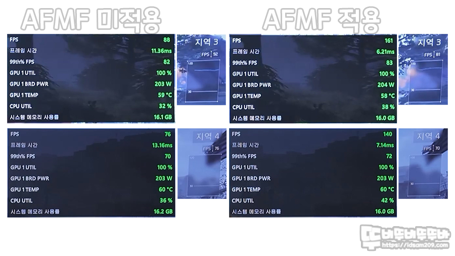 먼저 AFMF 미적용 시 프레임과 적용 시 프레임을 비교해 보았습니다.