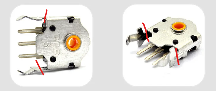 휠 인코더가 불량난 경우 손쉽게 인코더를 떼어내는 방법으로는 납땜으로 고정된 휠 인코더의 양쪽 가이드 부분을 니퍼로 끊어 줍니다.