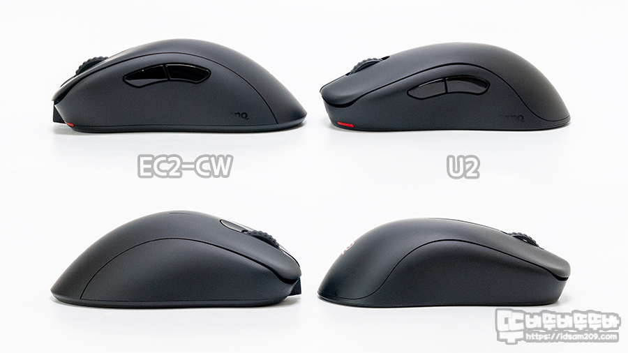 앞서 출시했던 EC2-CW와 다르게 대칭형으로 나온 U2는 단순 가로 / 세로 / 높이 사이즈만 보았을 때 그립감이 별로일 거 같다는 느낌이 들었는데 실제 제품을 만져보니 생각보다 그립감이 좋아서 앞으로는 수치상의 데이터로 마우스를 판단하기 어려울 거 같더군요.