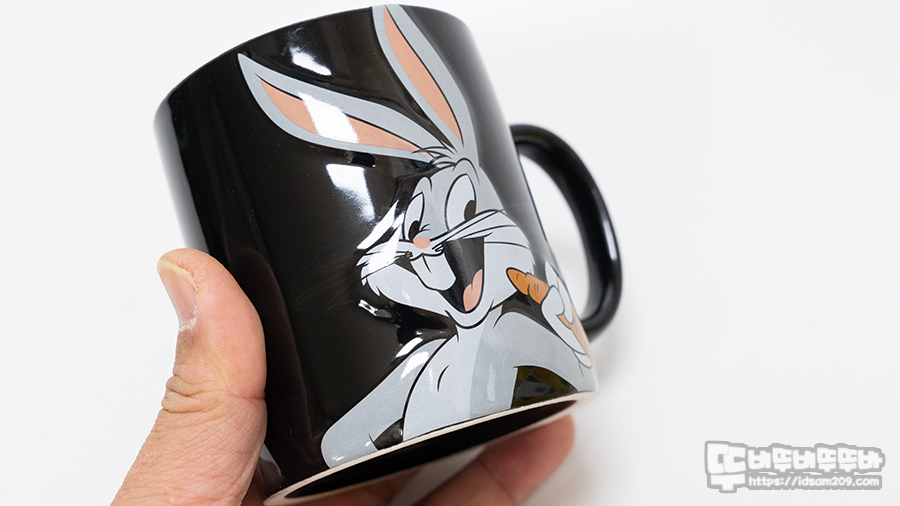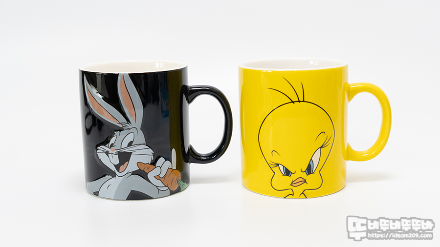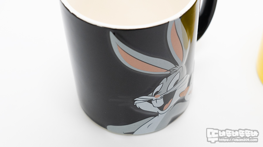 특별하진 않지만 머그컵에 캐릭터가 엠보싱으로 디자인되어 살짝 튀어나온 느낌으로 벅스 바니와 트위티 파이의 캐릭터 특징이 매력 포인트로 표현되었습니다. 그래서 눈에 끌렸다는..