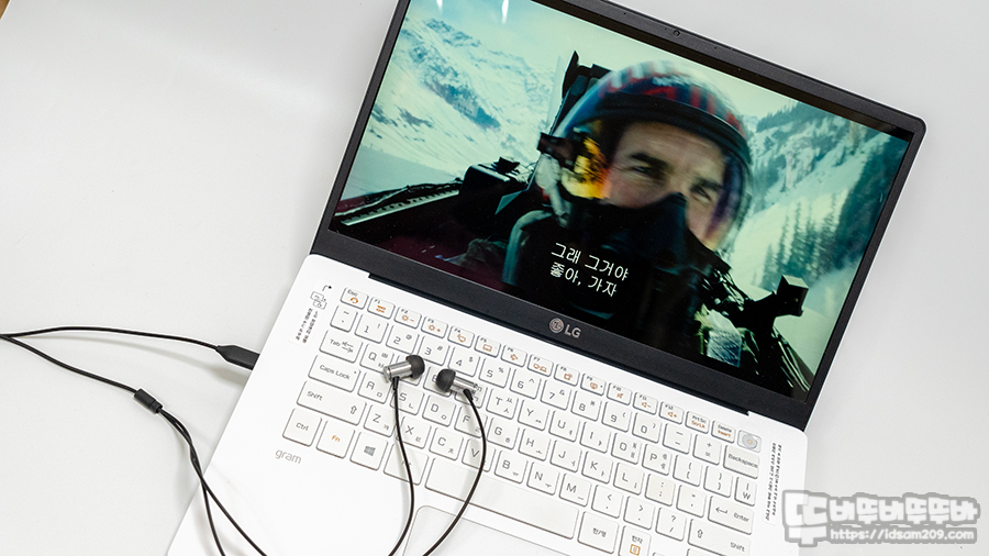 썬더볼트를 지원하는 LG 그램 14 노트북으로 영화와 유튜브 뮤직을 들어보면 2만 원대 이어폰에서 들을 수 없는 사운드를 들려주는데 가장 좋았던 부분이 저음이 뭉개지지 않는 부분입니다.