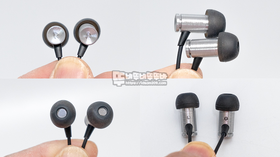 알루미늄 다이캐스트 하우징이라 그런지 살짝 무게감이 있는 편이며 헤드뱅 같은 격한 움직임에는 좋지 않으니 이어팁을 선택할 때 귓구멍에 꼭 맞게 선택하게 좋으니 참고하세요.