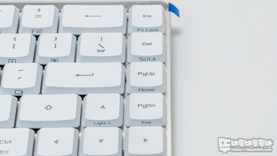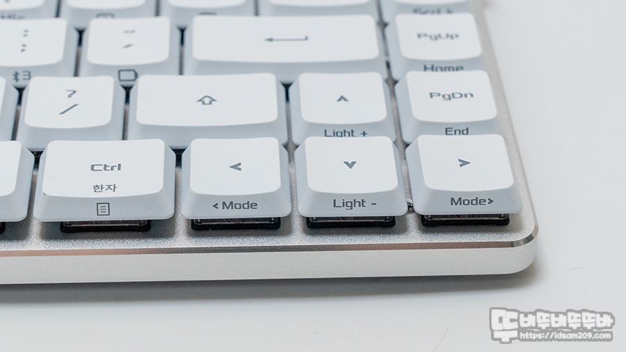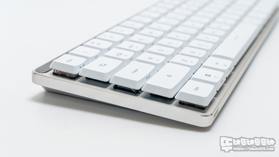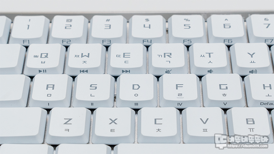 ABS 재질에 UV 하드 코팅이 더해져 번들거림을 최소화하며 정각은 키보드 기본 기능, 측각은 Fn 조합으로 사용하는 기능을 레이저 각인으로 표현해 주고 있고요.