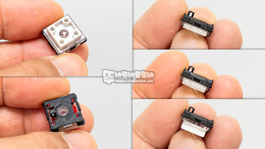 여느 광 스위치와 동일하게 스위치 하부에 센서 부분을 가리는 돌기 그리고 RX만의 특징인 중앙부에 위치한 LED 확산을 담당하는 즈가 추가된 것을 확인할 수 있네요.
