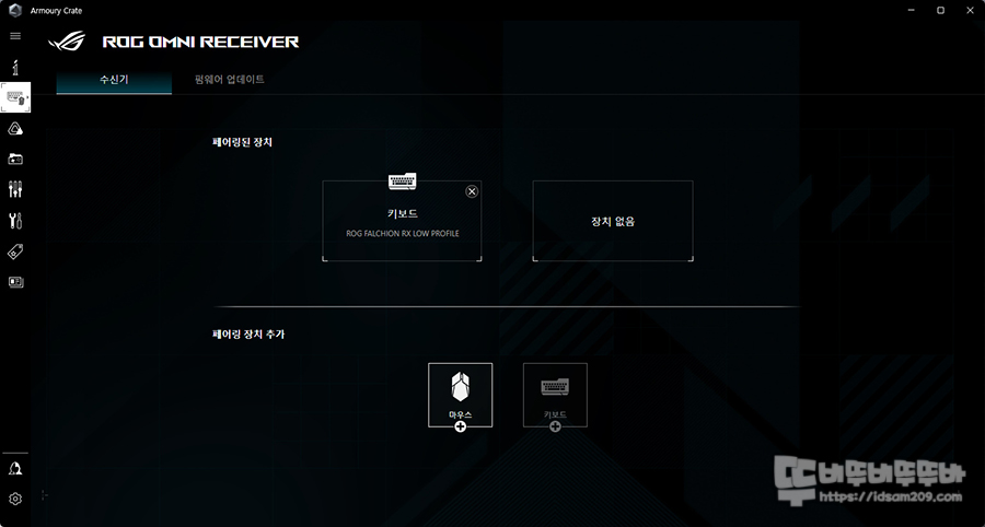 리뷰에서는 ASUS ROG FALCHION RX Low Profile 옵티컬 스위치 키보드와 ASUS ROG STRIX IMPACT III 무선 마우스를 Omni 리시버로 연결하여 같이 사용하였습니다.