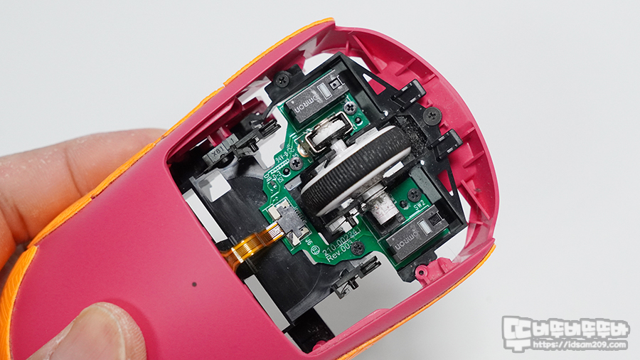 참고로 사이드 버튼이 스위치를 직접 때리는 형태인 줄 알았는데 사출물 중간 플라스틱 부분이 스위치에 닿아 작동하는 원리였네요 헐..