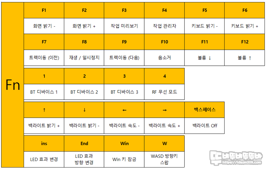 키캡이 염료승화방식으로 각인 부분과 이미지가 인쇄되어 Fn 기능에 대한 각인이 되어있지 않기에 제품의 매뉴얼을 숙지해야 하는 편이니 참고하시고요.