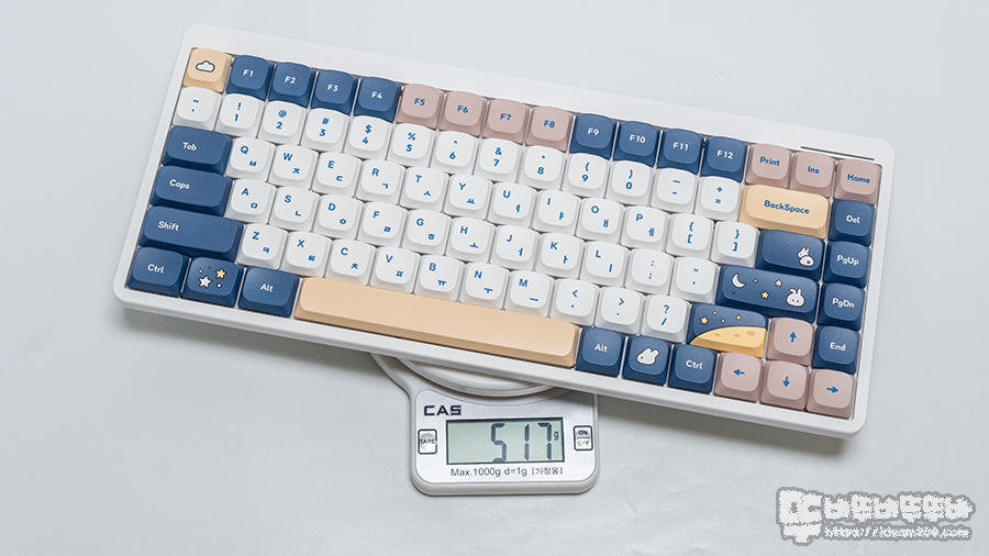 키캡은 PBT 염료승화 방식으로 밋밋한 자판 느낌이 아닌 귀염뽐짝 이미지를 인쇄하여 달토끼 에디션으로 출시하였습니다.