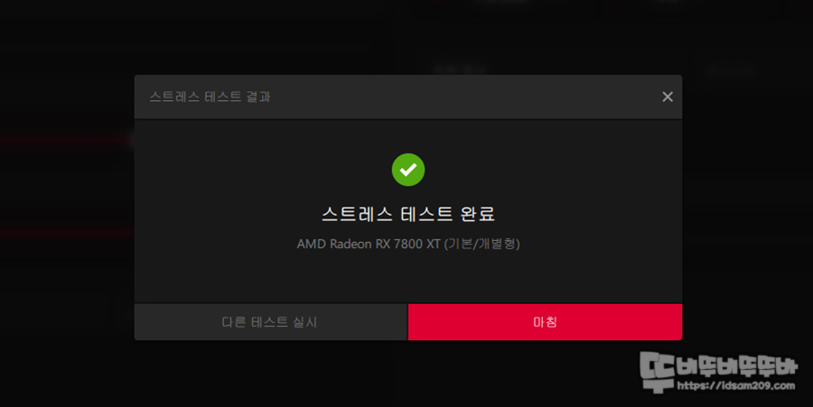 테스트 과정에 문제가 있다면 다운이나 재부팅이 되겠지만 특별한 문제가 없다면 정상적으로 테스트를 마쳤다고 알려줍니다.