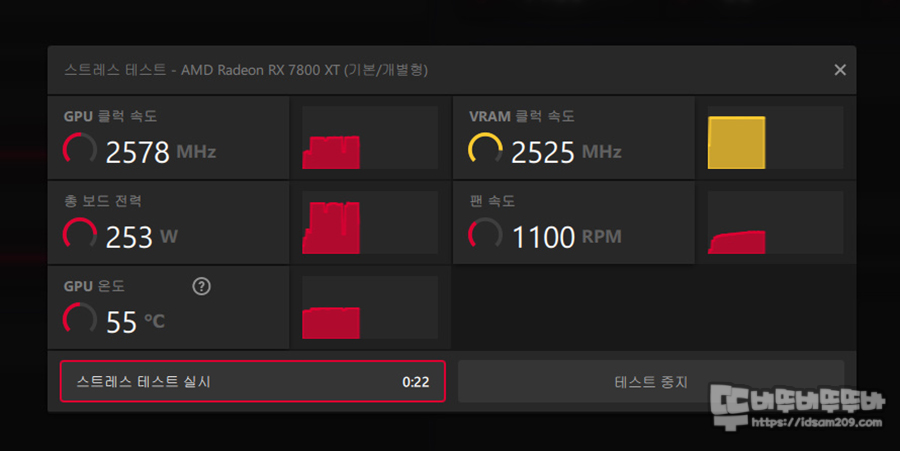 모든 설정이 끝난 후 스트레스 테스트를 통해 안정성을 확인해 보시면 좋은데 기본 테스트 시간 60초 ~ 600초 테스트가 가능하니 편차가 큰 값이 아니기에 5분 내외로 테스트해 보시는 것을 좋을 거 같습니다.