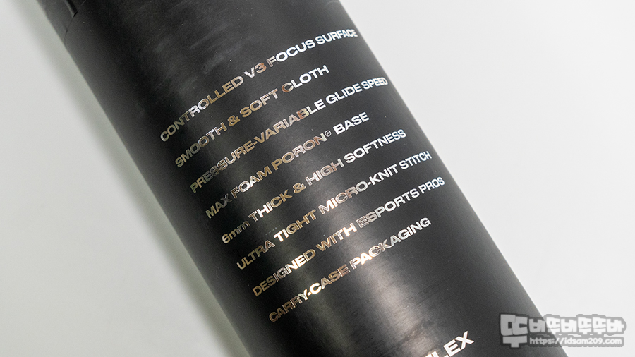 지관통 디자인으로 포장된 프나틱기어 FOCUS3 MAX 포론 컨트롤 게이밍 마우스패드는 패키지 표면을 보호하는 부직포 파우치로 포장되어 고급스러운 느낌을 줍니다.