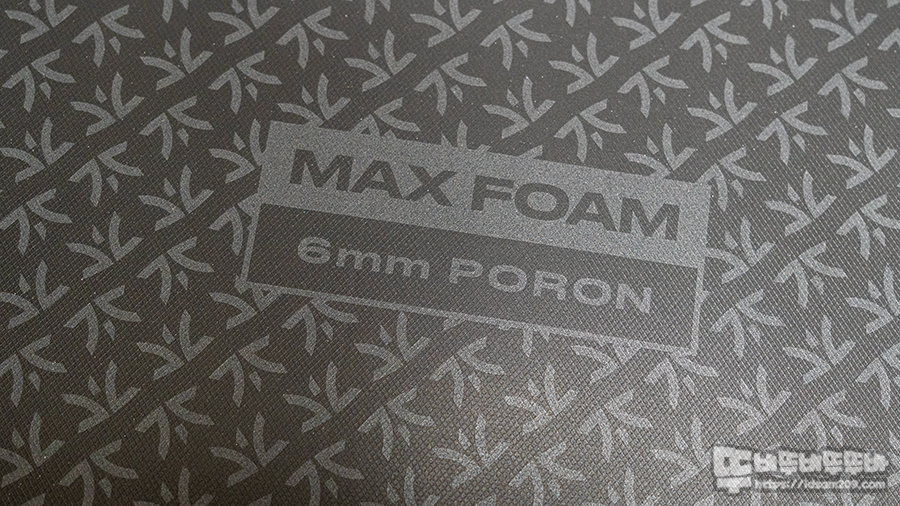 바닥면에는 MAX FOAM과 6mm PORON이 인쇄된 미끄럼 방지 표면을 확인할 수 있는데 제품의 아이덴티티를 잘 표현하는 거 같습니다.