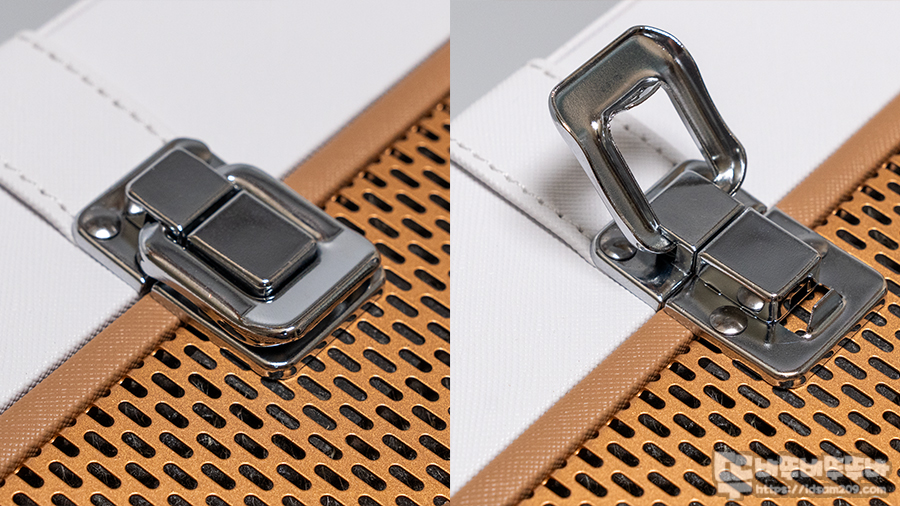 중앙 부분은 자석으로 고정되는 클립 형태의 잠금장치가 적용되어 간편하게 여닫을 수 있습니다.
