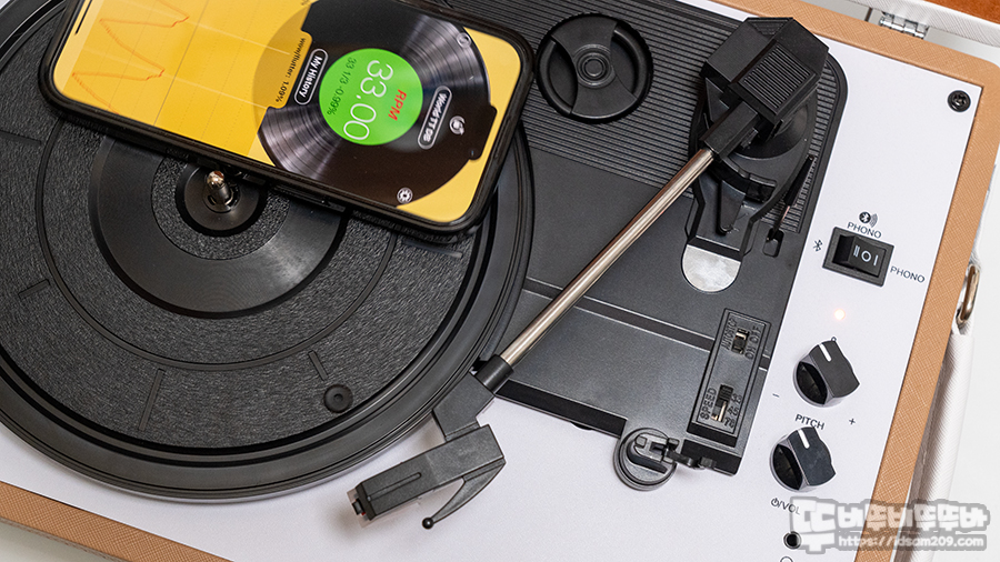 스마트폰 앱 중에 턴테이블 회전속도를 측정할 수 있는 앱을 활용하면 약간의 도움을 받을 수 있지만 알리를 통해 반사테이프에 레이저를 쏘아 회전을 측정하는 RPM 측정기 (약 1만 원대)를 활용한다면 좀 더 정밀한 속도 측정이 가능합니다.