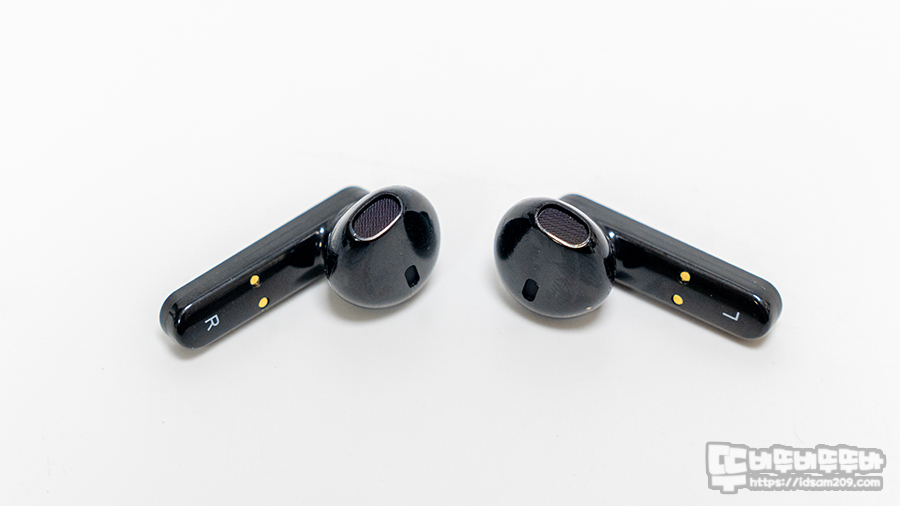 오픈형으로 디자인된 이어버드는 타원형으로 각인된 부분은 터치센서 컨트롤이 가능한 부분으로 터치 틱~ 틱 하는 사운드로 터치가 되고 있음을 알려주는데 터치 컨트롤이 꽤 정확하게 작동됩니다.