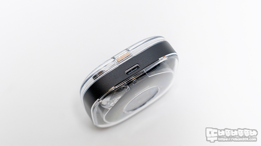 충전 포트는 USB-C를 사용하고 있어 편리한 충전이 가능하여 원형으로 디자인 검정색 베이스 부분과 외형 부분에 검정 띠 형태로 구분을 주고 있어 꽤 은은한 LED 효과를 표현합니다.