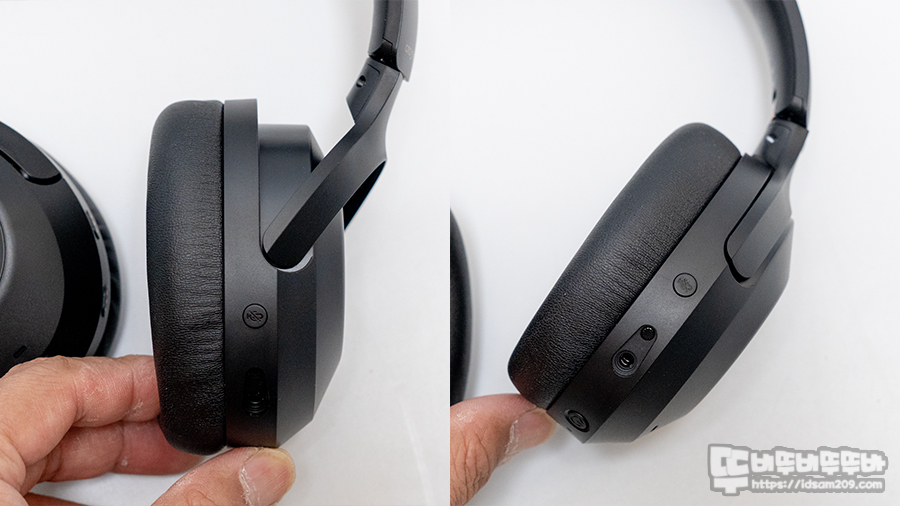 이어컵 하우징 안쪽인 이어패드 안쪽에 노이즈 캔슬링 마이크가 만져지지만 생각보다 심하게 돌출되어 있진 않아 착용에 부담을 주진 않더라고요.