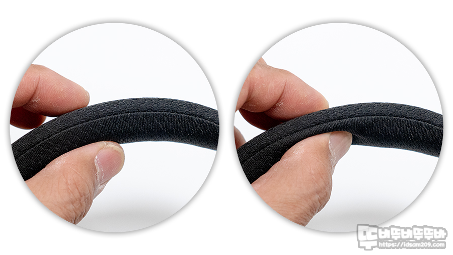 메시 소재가 사용된 헤어밴드 안쪽에는 쿠션이 적용되어 있어 정수리 눌림을 조금 완화해 줍니다.