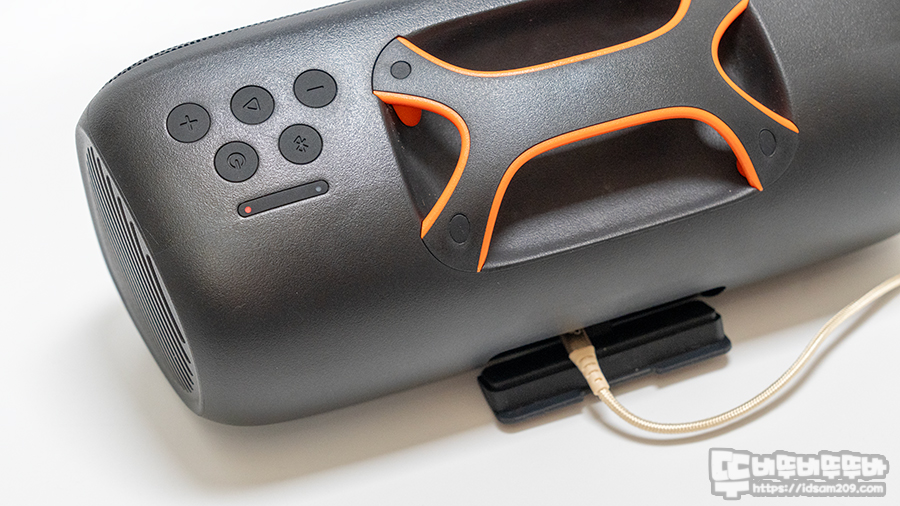 홈 파티라는 부분이 우리에겐 익숙하지 않지만 조금만 행사에 특화된 제품으로 18W 출력과 IPX7 방수 지원하며 중앙의 패시브 라디에이터 주변에 RGB LED 링으로 다양한 효과를 보여주는 꽤 든든하며 출력이 커서 그런지 제법 사이즈가 있는 제품인데요.