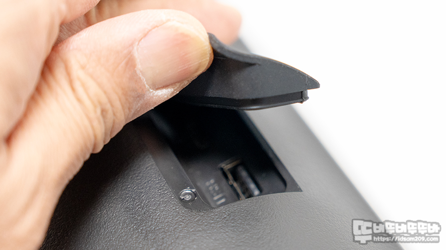 IPX7 방수를 지원하는 제품이다 보니 충전 포트와 메모리 입력 버튼이 외부로 노출되고 있지 않으며 제품 뒷면에 실리콘 커버를 오픈하면 충전 및 입력단자를 확인할 수 있는데요.