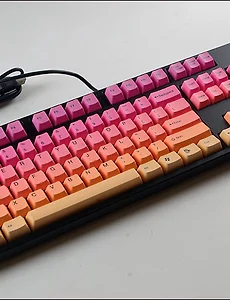 키보드매니아에서 키캡 공구를 하고 있습니다. 이중사출 PBT 썬라이즈 키캡 실 제품 사진 제품 설명 가. 아이오매니아 이중사출 키캡 시즌 3 PBT 썬라이즈 키캡 a. 제조사는 국내에서도 잘 알려져 있는 대만 TAIHAO사 입니다. b. 색상은 보라, 핑크, 오렌지, 옐로우톤 색상 키캡이 섞여 있습니다. c. 영문 키캡 , PBT 재질, 이중사출 키캡, 104키 구성, 윈도우 및 메뉴키는 Window 7 스타일 키캡으로 처리, 키캡 리무버 포함, 패키지는 블래스터로 처리되어 있습니다. d. 시즌 3 키캡의 기계식 키보드 지원 사항은 아래와 같습니다. 기본적으로 104키 배열을 따른 104키 키보드 혹은 87키 배열 텐키레스 키보드에서 사용 가능합니다. 1) 마제스터치 시리즈 – 한글판 89, 106 배열..