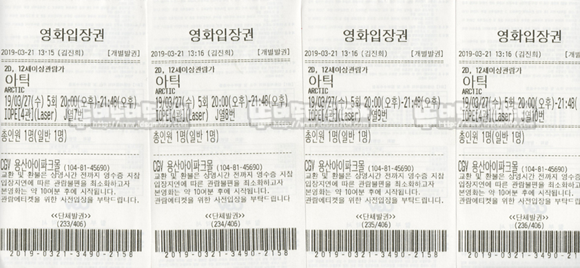 장소 : 용산 CGV 4관 (Laser 상영관) J열 7~10번