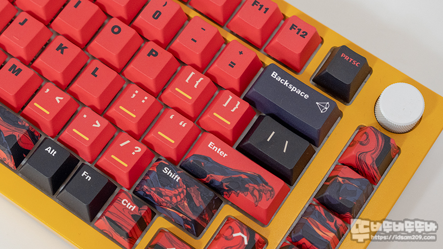 PBT 염료승화 방식이 적용된 키캡의 인쇄나 각인은 상당히 깔끔하게 잘 나왔으며 텐키 구성이 빠진 부분으 아쉬움이 남습니다.