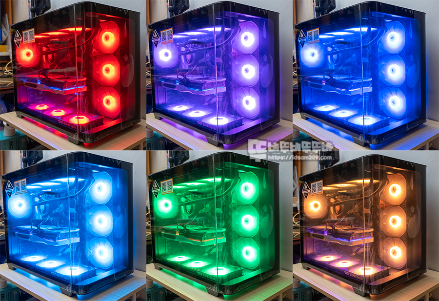 지금까지 케이스 리뷰를 할 때 강조하는 부분이 같은 색감을 가지고 있는 쿨링팬으로 구성하는 것을 강력하게 추천드리는 편인데 이번 C7RA 120mm 쿨링팬과 NEBULA DN-360 ARGB 수랭 쿨러의 ARGB 색감이 상당히 진득해서 정말 맘에 들었습니다.