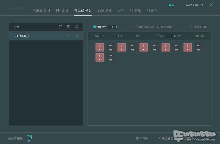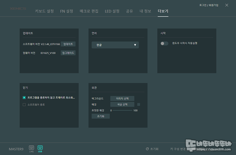 로그인을 해야 확인이 가능한 내 정보 부분은 아마도 키 설정과 LED, 매크로 등 키보드의 설정을 클라우드에 저장하여 관리하는 느낌이지만 서버를 제닉스에서 운영하는 거 같지 않기에 회원 가입 사용은 추천드리지 않습니다.
