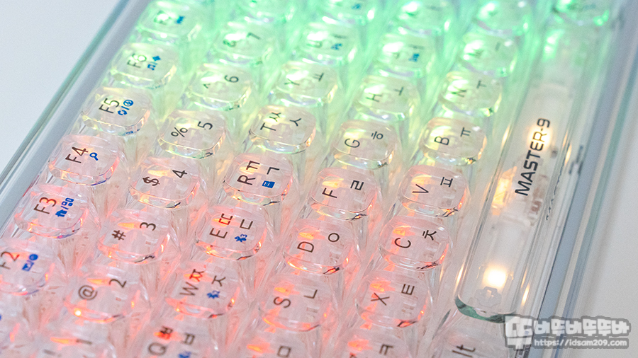 제닉스 MASTER9 무선 블루투스 기계식 키보드의 RGB LED 표현을 사진으로 담아보았습니다.