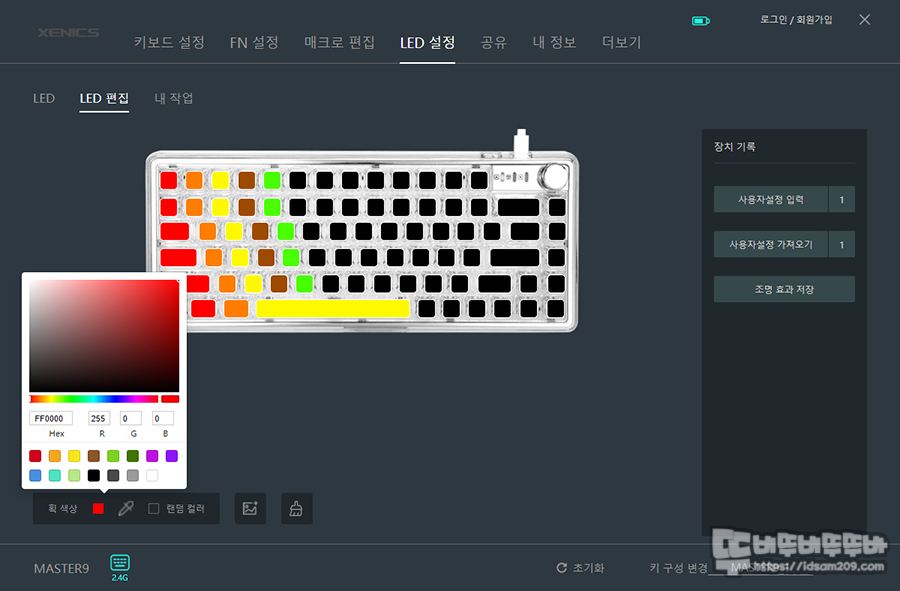 LED 편집으로 설정한 LED 컬러를 리스트로 저장하여 필요에 따라 꺼내서 사용할 수 있다는 점은 정말 좋더라고요.