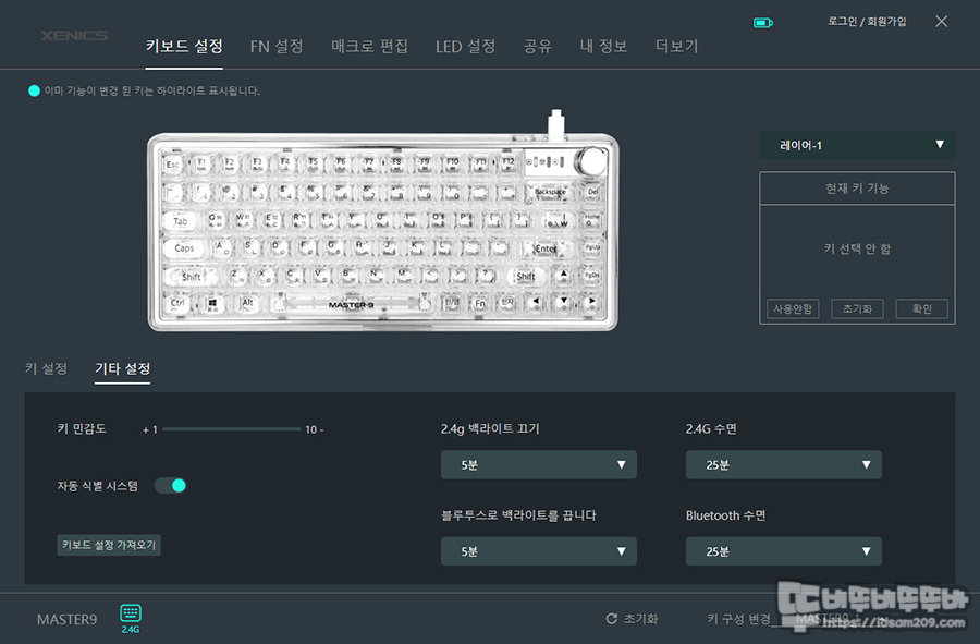 제닉스 MASTER9 무선 블루투스 기계식 키보드 소프트웨어의 첫인상은 무겁다? 화면이 복잡한 느낌을 줍니다.