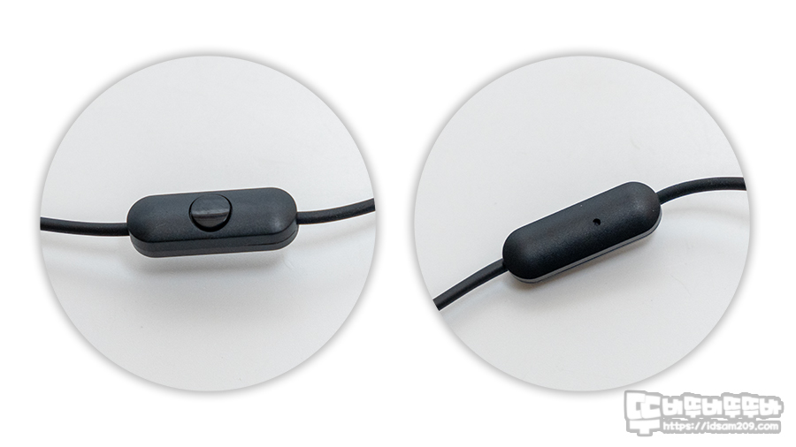왼쪽과 오른쪽이 동일하게 분리되는 Y형 구조로 오른쪽 케이블 중간에 원버튼 구조의 인라인 컨트롤가 내장되어 있어 재생/일시 정지, 트랙 이동, 전화 수신 등 다양한 기능으로 사용되며 컨트롤러 후면에는 MEMS 마이크가 내장되어 선명한 음성 통화도 가능하네요.