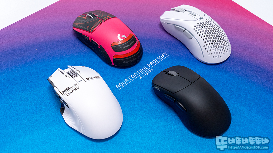 마우스 브랜드 LAMZU THORN / 글로리어스 Model D 2 / 로지텍 G Pro X Superlight / 다얼유 A850 Pro MAX 등의 마우스를 이용하여 테스트를 해보았습니다.