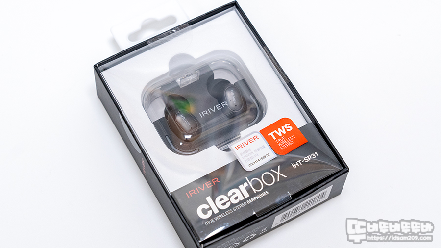 전면에 투명 PET 소재가 사용된 패키지는 크리스털 디자인이 눈에 잘 들어며 클리어박스 그리고 True Wireless Stereo (TWS) 그리고 모델명 IHT-SP31을 문구를 확인할 수 있습니다.