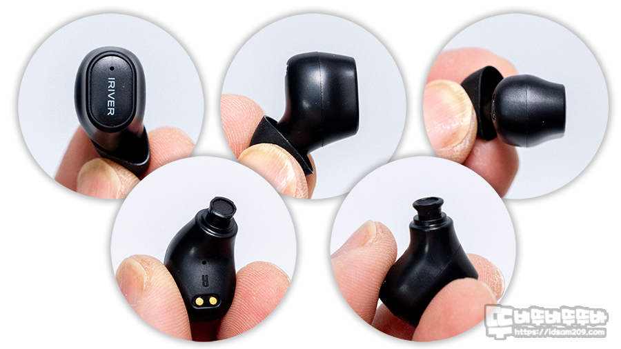 무선 이어버드 헤드 부분은 아이리버 로고로 터치센서 위치를 표시하고 그 위의 작은 홀을 통해 마이크 및 LED 인디케이터 표현을 해줍니다.