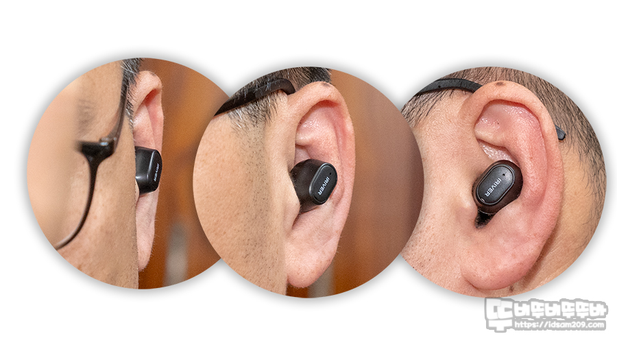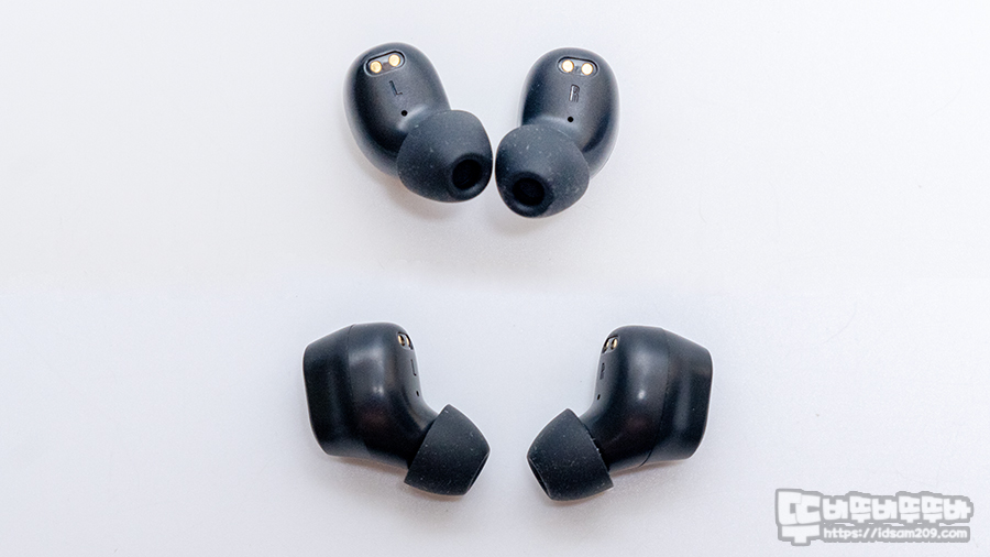 이어버드의 하우징은 좌우가 대칭형이지만 하우징 끝부분의 노즐부는 약 45도의 인체공학 디자인이 적용되어 좌우를 바꿔서 착용하기 힘드나 착용 위치가 헷갈리시는 분들은 이어버드 하우징 안쪽에 R, L 표기를 참고하시면 착용하시는데 도움이 될 거 같네요.