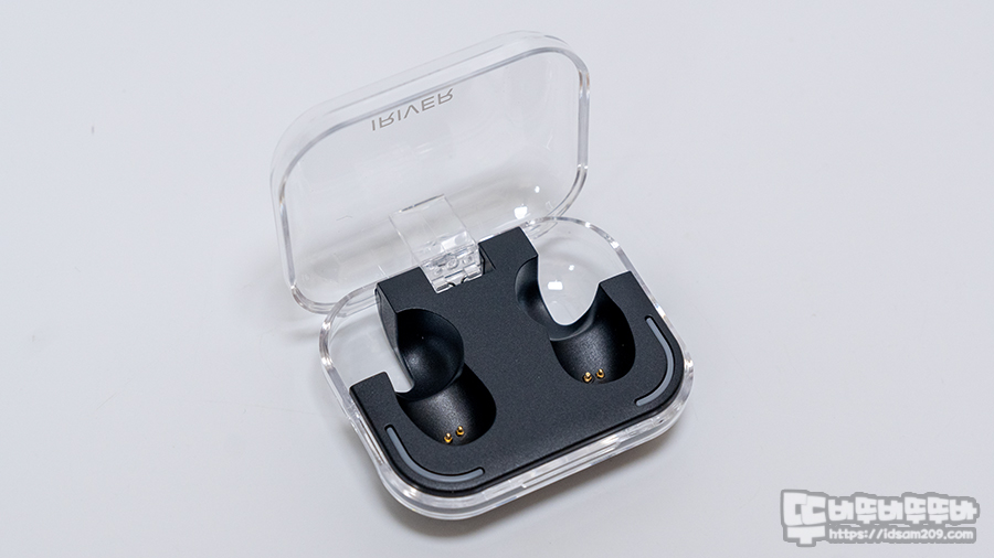 충전 케이스는 블랙 컬러 베이스에 크리스털 디자인의 투명 케이스가 감싸는 형태로 개방감을 주는데 시원시원해서 좋더라고요.