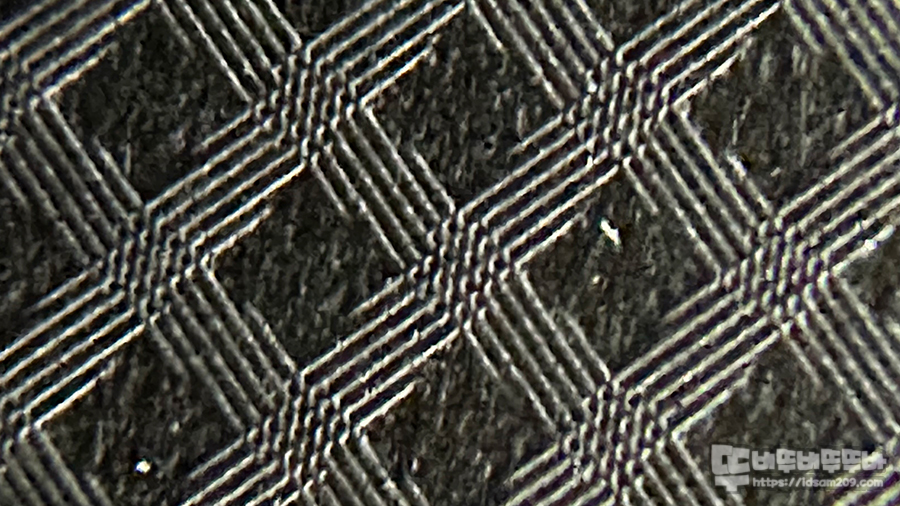 확대경으로 패드 표면을 살펴보면 흔히 하이브리드 계열에서 볼 수 있는 아문센 직물 모습인데요.